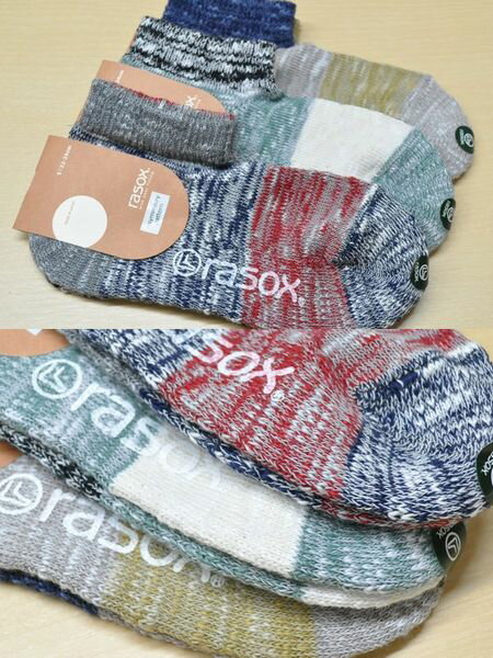 【2点までレターパックライト対応】rasox/ラソックス ビッグスラブアンクル 全4色 靴下 くるぶし丈 アンクルソックス ミックスカラー メンズ レディース ユニセックス